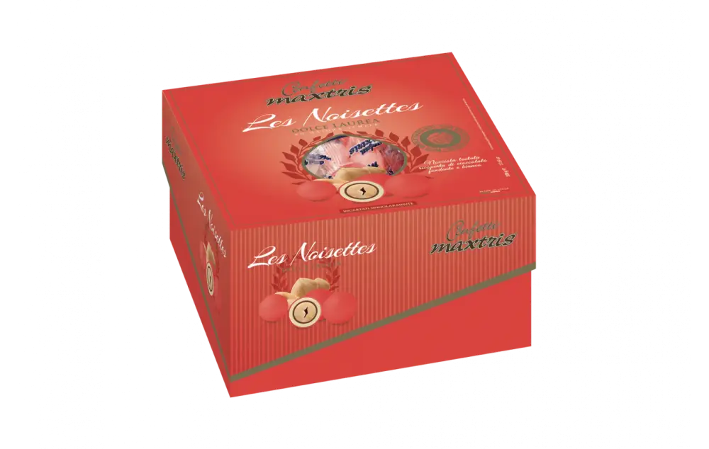 Nocciola tostata ricoperta da cioccolato fondente e bianco e da un sottile strato di zucchero.
